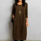 Bądź ciepła i stylowa tej zimy w tej damskiej sukience midi z długim rękawem Abdelaine, zaprojektowanej dla wygody i szyku. Dzięki długości midi i miękkiemu, ocieplanemu materiałowi, jest idealna na codzienne wyjścia, do biura czy spotkania świąteczne. Boczne kieszenie dodają funkcjonalności, zachowując elegancję. Jej uniwersalny krój łatwo łączy się z różnymi rodzajami obuwia, od płaskich butów po obcasy, tworząc kompletny zimowy strój. Ta wygodna, stylowa i praktyczna sukienka to must-have w Twojej zimowej garderobie.