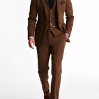 Garnitur Alden to elegancki, trzyczęściowy smoking z tweedu, łączący ponadczasową klasę i wyczucie stylu. Dzięki wyszukanej formie i wysokiej jakości tkaninie, zapewnia szykowny wygląd na wyjątkowe okazje. Niezależnie czy to ślub, uroczystość czy spotkanie biznesowe – ten garnitur sprawia, że każda okazja nabiera odpowiedniego charakteru.