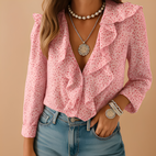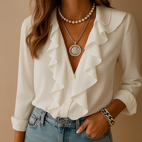 Aleida - Damska koszula z długimi rękawami i falbankami