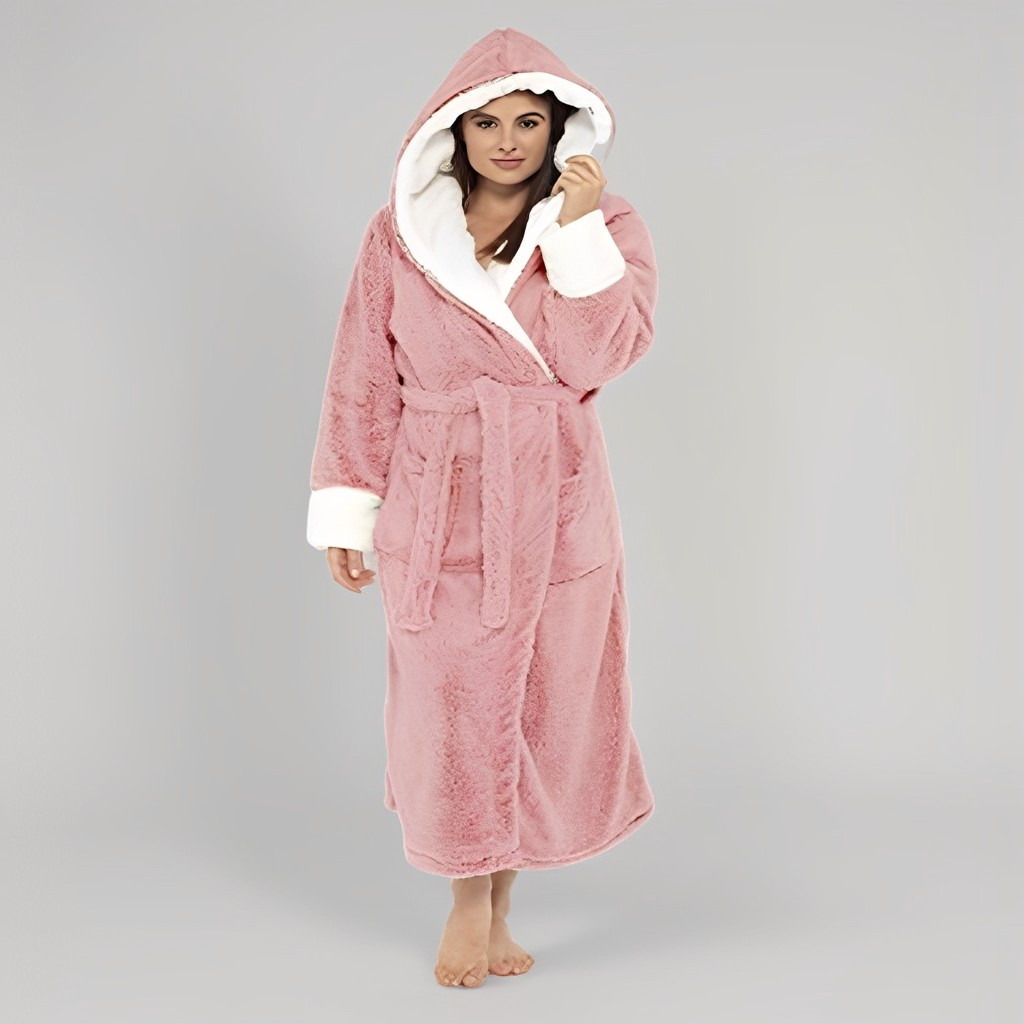 Aleta – Delikatny szlafrok dla kobiet zapewnia idealne uczucie relaksu po prysznicu, kąpieli lub po prostu podczas przytulnych dni w domu. Jego miękki materiał zapewnia wygodę noszenia i utrzymanie ciepła. Dzięki nowoczesnemu krojowi i praktycznemu paskowi łączy funkcjonalność ze stylem. Niezbędny dla każdej kobiety, która pragnie wygody i elegancji w jednym ubraniu.