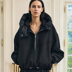 Alexa - Luźna wełniana kurtka z kapturem dla kobiet