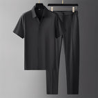 Zestaw Alexander – Luxe polo i spodnie męskie łatwo dodaje szyku do twojej szafy, zapewniając wygodę. Wykonany z najlepszych materiałów, zestaw łączy eleganckie polo z idealnie leżącymi spodniami, tworząc stylowy i harmonijny komplet. Świetnie sprawdza się na nieformalne wydarzenia, spotkania społeczne i swobodniejsze biuro, zawsze gwarantuje elegancki i zadbany wygląd. Dzięki ponadczasowej stylistyce i dopasowanemu krojowi, jest niezastąpiony w garderobie każdego mężczyzny. Odkryj połączenie luksusu i codziennej wygody z zestawem Alexander.