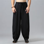 Alfred - Męskie, luźne spodnie lniane z szerokimi nogawkami