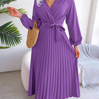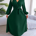 Alicia - Elegancka maxi sukienka z plisami i paskiem dla kobiet