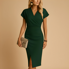 - Korzystny wygląd: dekolt w serek i krój midi podkreślają sylwetkę, dodając elegancji.