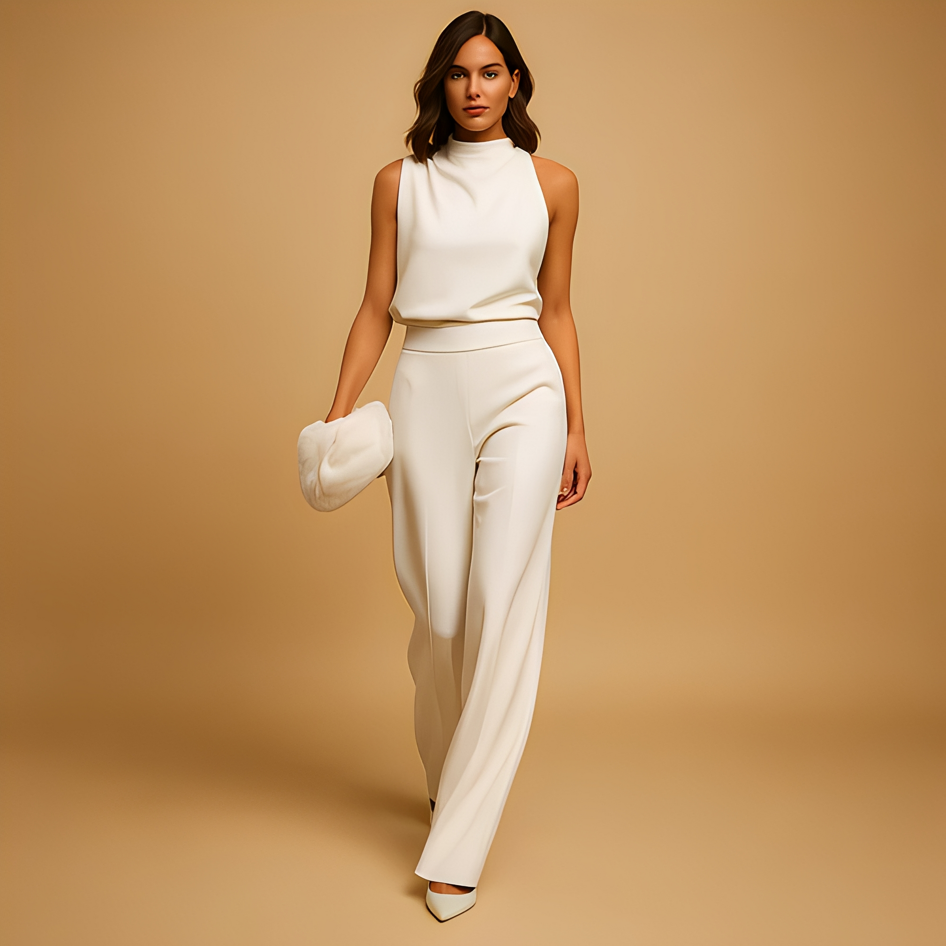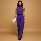 Ten elegancki kombinezon bez rękawów Almerra został zaprojektowany, by wygodnie łączyć modę z komfortem. Szerokie nogawki i korzystny krój zapewniają szykowną sylwetkę, odpowiednią dla każdej figury. Wykonany z miękkiego i wysokiej jakości materiału, gwarantuje wygodne dopasowanie, które porusza się razem z tobą. Idealny na oficjalne wydarzenia i luźniejsze wyjścia, świetnie pasuje do obcasów lub płaskiego obuwia. Dodaj ten wszechstronny i ponadczasowy kombinezon do swojej kolekcji.
