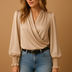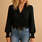 Twoja niezbędna bluzka z dekoltem w serek, łącząca klasykę z codzienną elegancją.