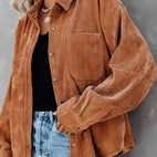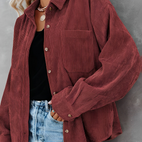 TaAmara kurtka ze sztruksu z guzikami?ma ? swobodną sylwetkę?i posiadakołnierz, guziki na środku przodu i pojedynczą kieszeń na piersi.Nieco dłuższy dół z tyłu zapewnia dodatkowe pokrycie. Noś ją z pasującymi szortami lub ulubionymi dżinsami.