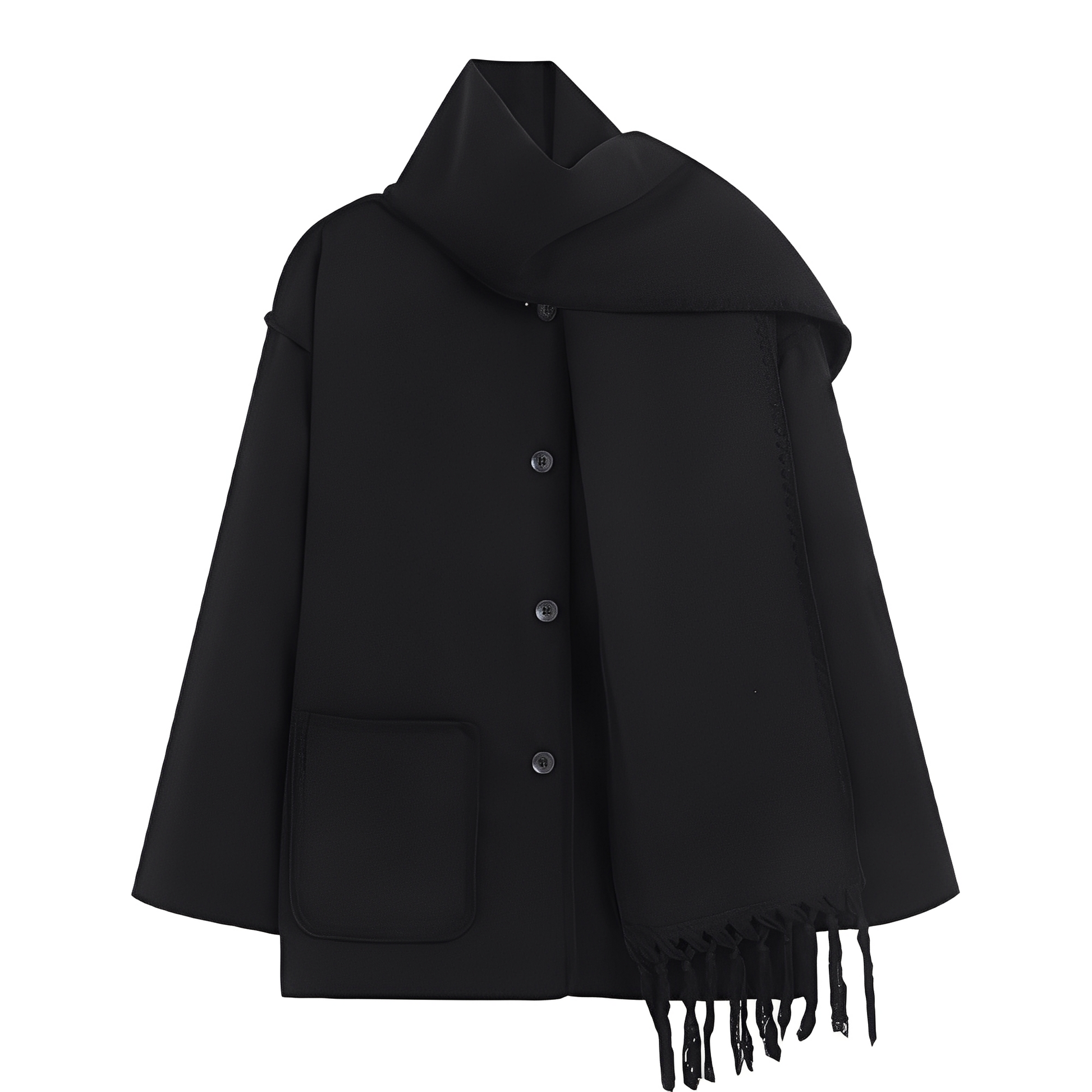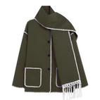 Amilia - Elegancka, luźna kurtka wełniana z szalem dla kobiet