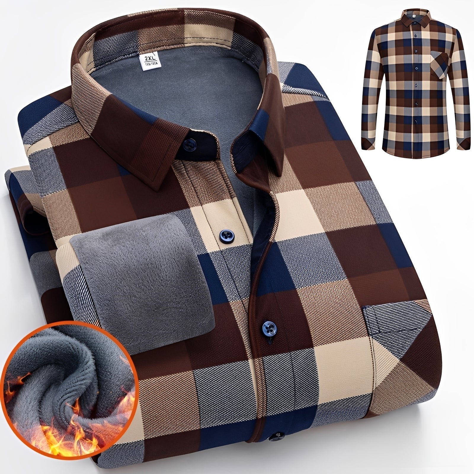 Anton - Modna i ciepła koszula w kratę z miłym polarem dla mężczyzn