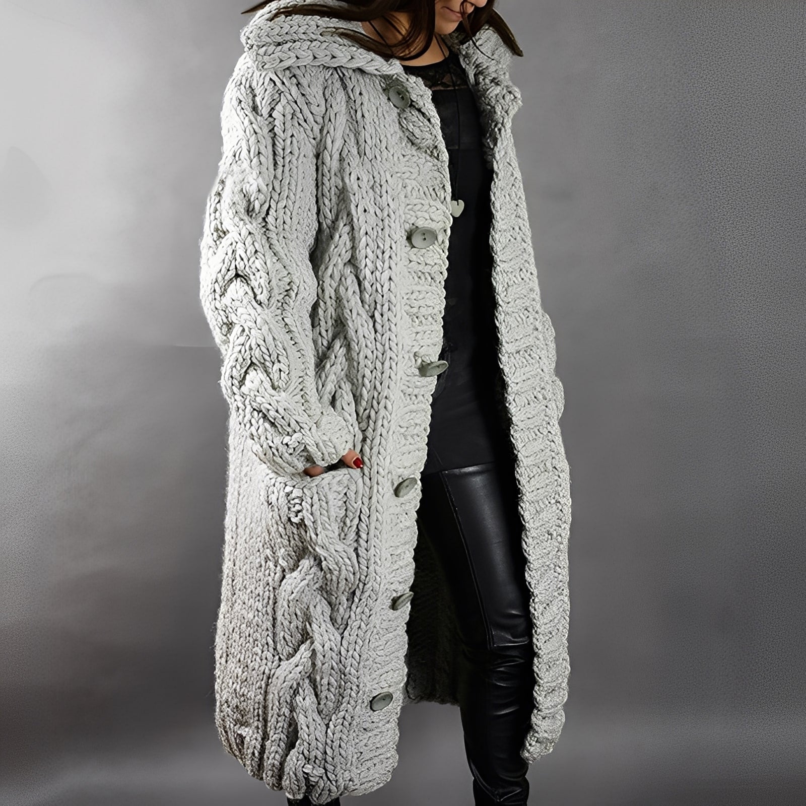 Arielle - Stylowy, luźno dopasowany długi kardigan wełniany dla kobiet
