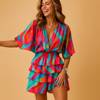 - Podkreślający krój: dekolt V i krótka długość uwydatniają sylwetkę, dodając szyku.