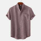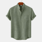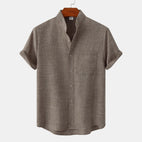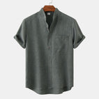 Bastien - Koszula męska z lnu z krótkimi rękawami i rewersem