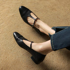 Bella - Swobodne skórzane baleriny z T-kształtną zapięcią dla kobiet