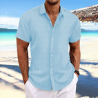 ZIMOWA WYPRZEDAŻOberon - Męska Koszula Lniana z Krótkim Rękawem