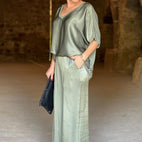 Wejdź do świata elegancji z Satynowym Zestawem Elegancji Brittany. Ten stylowy komplet dwuczęściowy świetnie łączy elegancję z wygodą. Bez względu na to, czy uczestniczysz w wyjątkowym wydarzeniu, czy chcesz poczuć się elegancko każdego dnia, ten zestaw z satyny zapewni Ci stylowy wygląd bez wysiłku. Delikatna i błyszcząca tkanina dodaje luksusowego charakteru, a komfortowy krój umożliwia swobodne poruszanie się. Bądź gotowy na błysk z Brittany, gdzie luksus łączy się z wygodą.