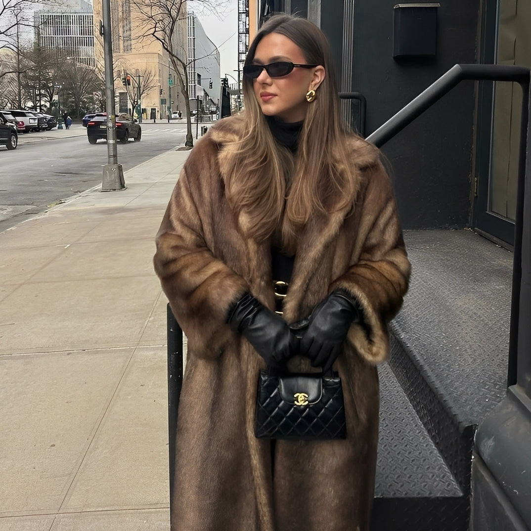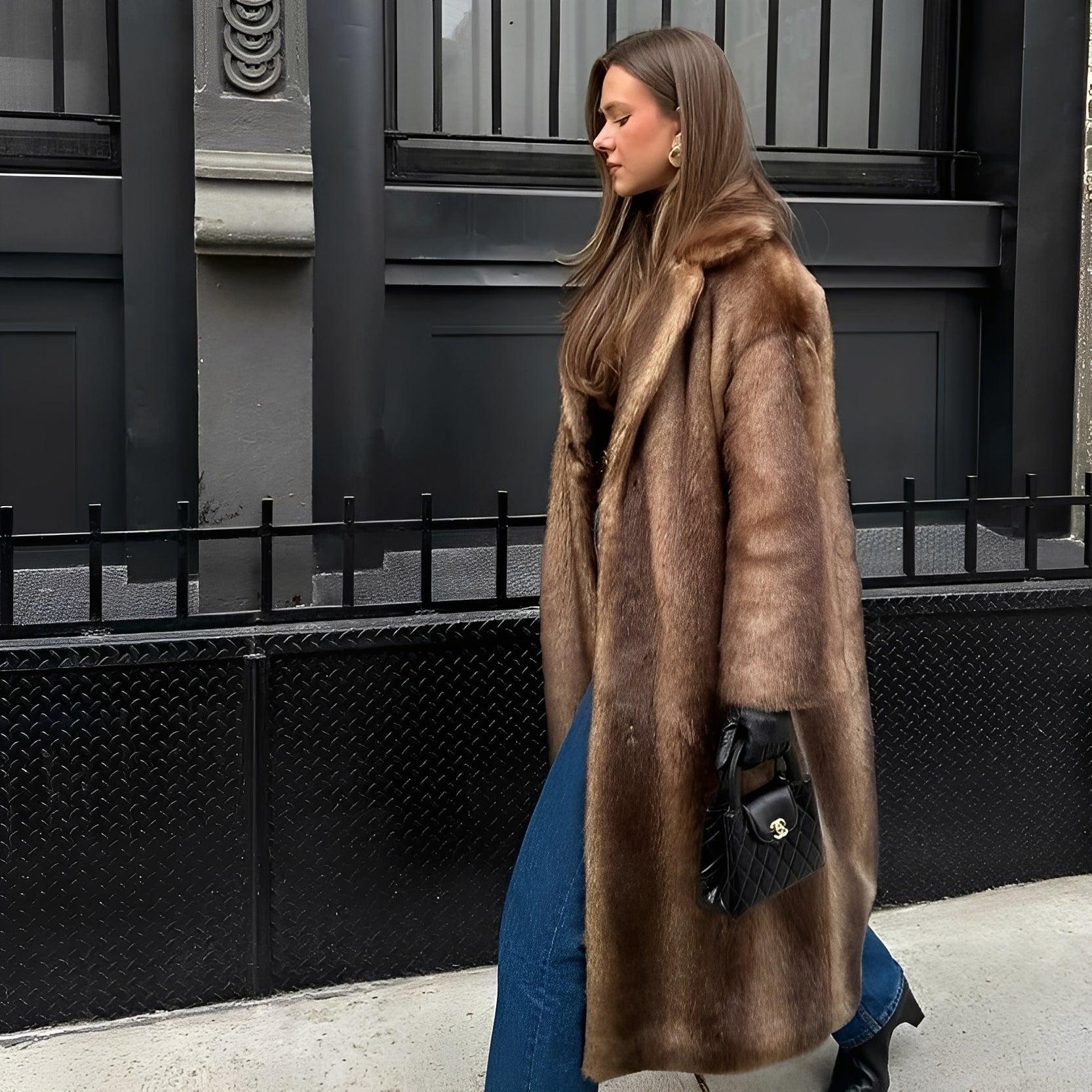 Carmella - Stylowy długi płaszcz z imitacji futra dla kobiet