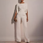 Przyjmij wyrafinowany styl z naszym kombinezonem Carolane Chic z rozszerzanymi rękawami, elegancką częścią zaprojektowaną, aby połączyć wyrafinowanie i komfort. Spektakularne rozszerzane rękawy są ozdobione subtelnymi perłami, dodając odrobinę luksusu bez przesady. Wykonany z miękkiej i wysokiej jakości tkaniny, dopasowuje się do twojej sylwetki, jednocześnie pozwalając na swobodę ruchów. Klasyczny krój sprawia, że ten kombinezon jest idealny na różne okazje, od formalnych kolacji po swobodne spotkania. Z projektem łączącym nowoczesną modę i ponadczasową elegancję, ta część jest niezbędna w garderobie każdej kobiety, która chce czuć się wyrafinowana i pewna siebie.