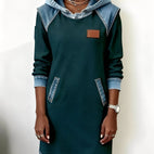 Sukienka Catherine z kapturem łączy komfort z modnym stylem sporty chic. Ma boczne kieszenie, wygodny krój oraz ozdoby z dżinsu, co sprawia, że jest doskonała na co dzień, do relaksu lub spokojne weekendy. Miękki materiał zapewnia wygodę, a kaptur nadaje młodzieżowego, swobodnego stylu. To sukienka, która łączy styl z praktycznością.