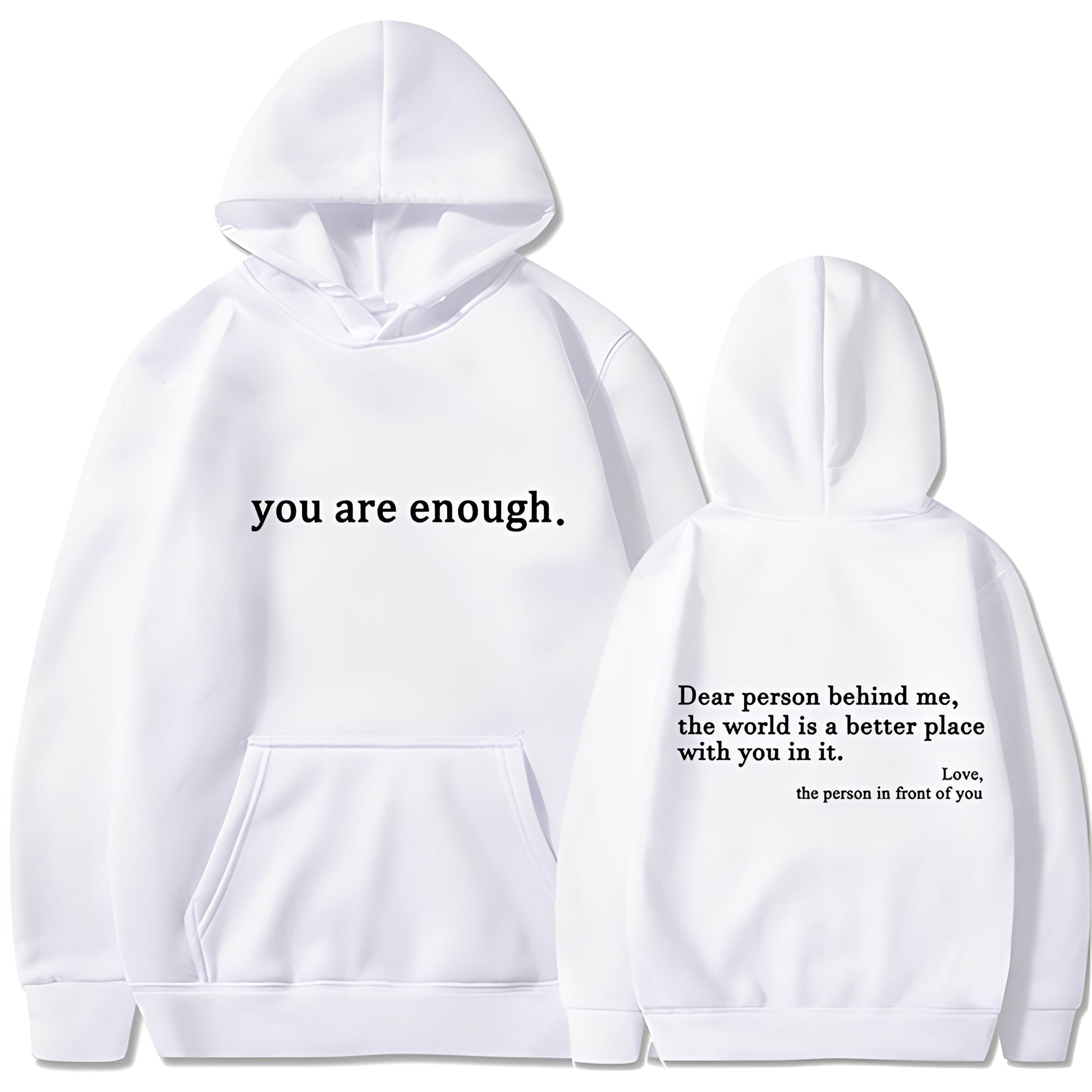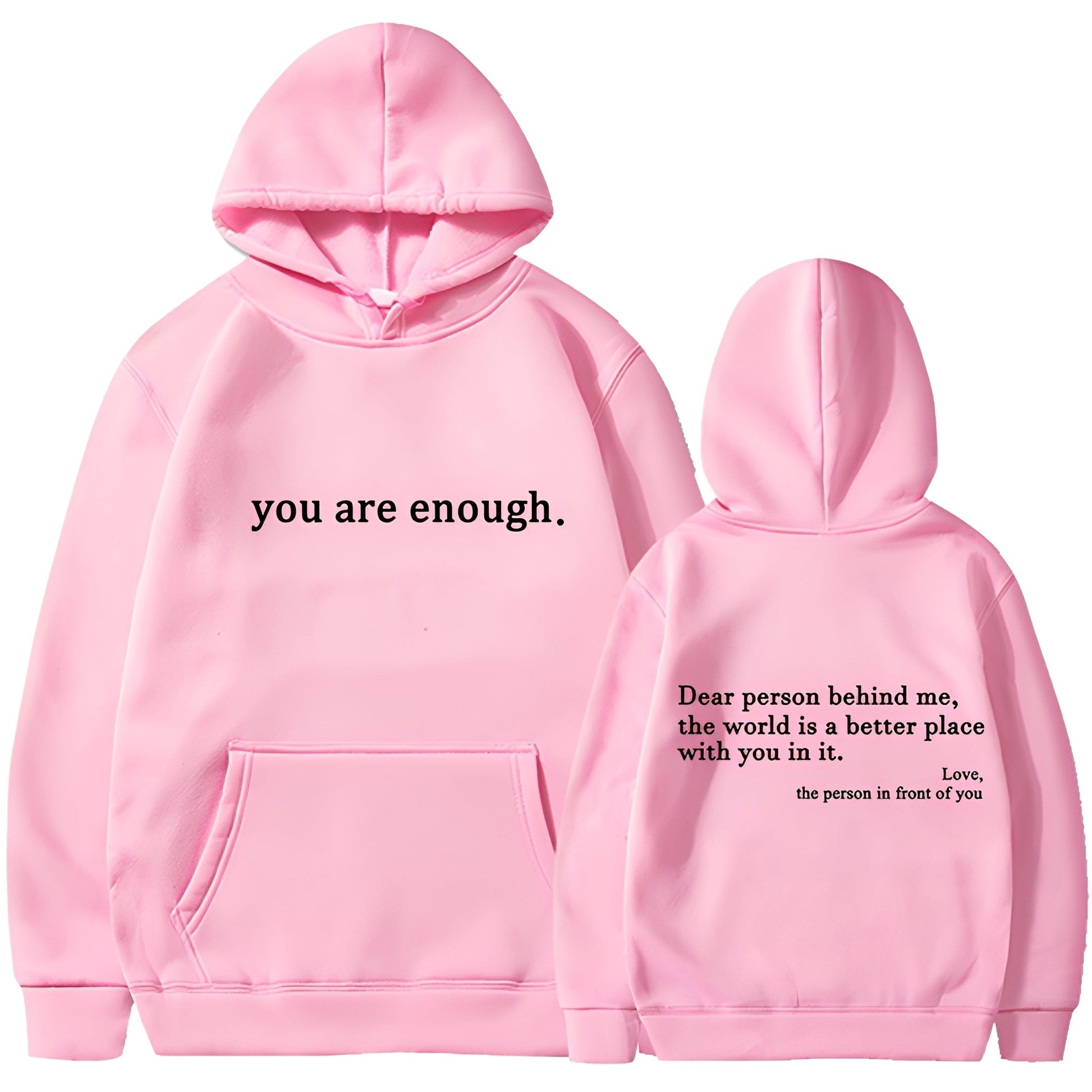 Cecilia Dear person behind me hoodie łączy wygodę z inspirującymi słowami.ment. Uszyta z miękkiego, przyjaznego dla skóry materiału, zapewnia przyjemne ciepło w chłodniejsze dni. Luźny krój i praktyczna kieszeń kangurka czynią ją idealną na czas wolny, spacery czy relaksujące wieczory. Wielką atrakcją jest pełne miłości przesłanie na plecach, które wywołuje uśmiech na twarzy każdego.