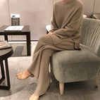 Zestaw Christine składa się z luźno dzianego swetra i komfortowych spodni z lekkiej dzianiny. Oba elementy dają przyjemne odczucia podczas noszenia, idealne do relaksu w domu lub stylowego wypoczynku. Przyjazny dla skóry, zapewnia nowoczesny swobodny styl. Idealny, gdy pragniesz połączyć wygodę z elegancją.