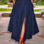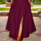 Gwenda - Elegancka długa suknia z rozcięciem dla kobiet