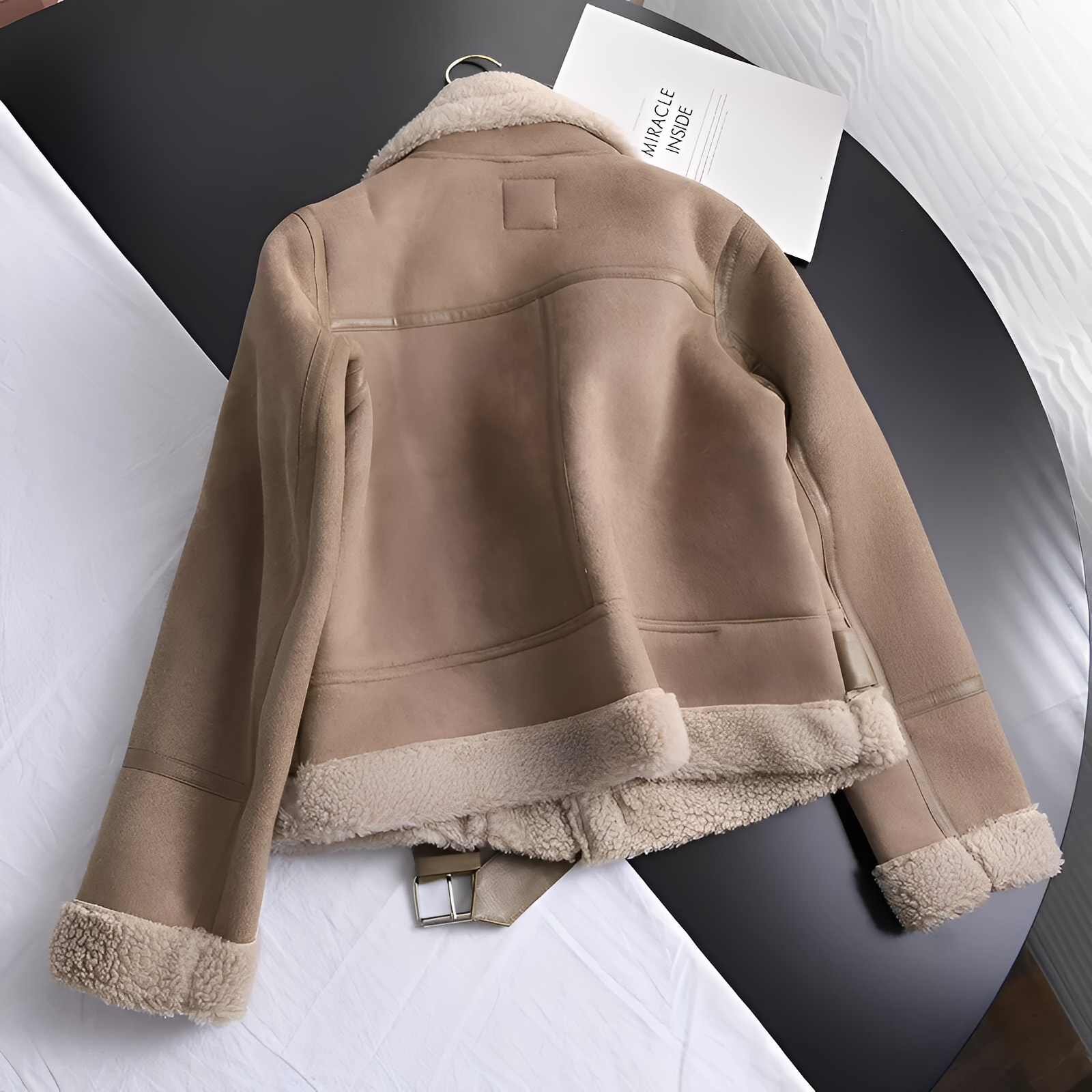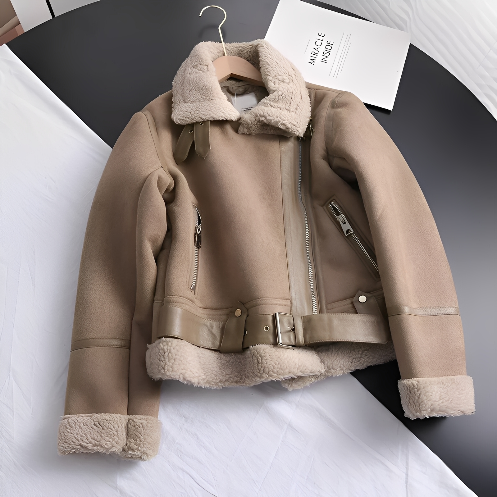 Pozostań ciepła i modna z grubą, oversize zimową kurtką Crisilda. Kurtka wykonana jest z miękkiego materiału przypominającego zamsz, z podszewką z syntetycznego futra i regulowanym paskiem dla komfortu i dopasowanego kroju. Klasyczny zamek błyskawiczny łączy nowoczesny zimowy wygląd z niezbędnym ciepłem. Idealna na luźne spotkania, wieczory lub jako dodatek do codziennego ubioru, dodając każdej stylizacji natychmiastowego smaku i pewności. Oversize krój zapewnia swobodę i elegancję bez wysiłku.