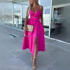 Ta wykwintna letnia sukienka midi dla kobiet od marki Dallia łączy klasyczny design z lekkim i przewiewnym materiałem, zapewniając komfort przez cały dzień. Jej korzystny krój podkreśla naturalne kształty, a jednocześnie oferuje dużą swobodę ruchów, co sprawia, że jest doskonała na letnie okazje. Zaprojektowana dla wszechstronności, świetnie pasuje do sandałów, wysokich obcasów lub płaskich butów na luźne wyjścia, brunche czy wieczorne wydarzenia. Jej długość midi i elegancki krój tworzą wyrafinowany i kobiecy look, który uzupełnia każdą letnią garderobę. Niezastąpiona sukienka dla kobiet, które poszukują stylu, wygody i elegancji w jednym.