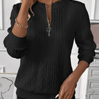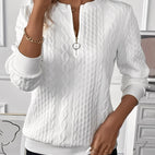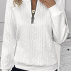 Sweter Davida jest wykonany z miękkiej przędzy i ma praktyczny zamek z przodu, który umożliwia elastyczne wentylowanie i indywidualne dopasowanie. Subtelnie pikowany design nadaje mu strukturę i nowoczesny, kobiecy charakter. Dzięki elastycznemu dopasowaniu, doskonale sprawdzi się na co dzień, w pracy lub podczas weekendowego wypoczynku – idealny sweter łączący wygodę ze stylem.