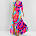 Delores - Długa sukienka w kwiaty z długimi rękawami