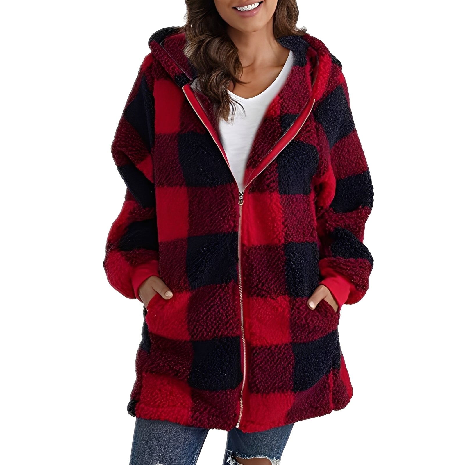 Kurtka „Desirae” łączy swobodny styl z praktycznym ciepłem. Materiał jest delikatny i dobrze izoluje, co zapewnia komfort noszenia, a kraciasty wzór dodaje nowoczesnego akcentu do Twojego stroju. Kaptur chroni przed wiatrem i zimnem – perfekcyjna na spacery, czas wolny lub spokojne dni w mieście.