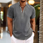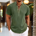 ZIMOWA WYPRZEDAŻOberon - Męska Koszula Lniana z Krótkim Rękawem