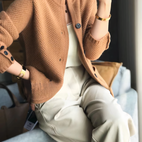 Edda to kaszmirowy kardigan z zapięciem na guziki, który ucieleśnia komfortowy luksus i ponadczasowy styl. Wykonany z najdelikatniejszego kaszmiru, oferuje poczucie ciepła i komfortu dzięki swojej drobno teksturowanej strukturze. Zapięcie na guziki z przodu umożliwia różnorodne opcje stylizacji, co czyni go idealnym zarówno na swobodne, jak i eleganckie okazje. Klasyczna sylwetka Edda i prążkowane detale na rękawach i dole wzmacniają jego ponadczasowy urok. Dostępny w starannie dobranej gamie kolorów, ten kardigan to wyrafinowana baza, która łączy komfort i trwałą elegancję, redefiniując swobodną elegancję w każdej garderobie.