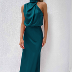Elianna - Szykowna sukienka midi z asymetrycznym dekoltem