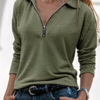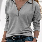 Bluza Elianna z zamkiem do połowy i lekkim, ciepłym materiałem jest idealna na spokojne jesienne i zimowe dni. Oddychająca tkanina zapewnia wygodę, a współczesny fason dodaje stylu. Świetna na co dzień, do relaksu lub aktywności sportowych.