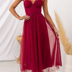 Odkryj ponadczasową elegancję damskiej sukni maxi - Subtelna suknia z szyfonu - Bez rękawów - Okrągły dekolt od Couture-Moda. Zaprojektowana dla elegancji, ta zachwycająca suknia ma lekki szyfon, elegancki tiulowy overlay i krój bez rękawów, który podkreśla.
