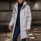 Elegancka męska zimowa parka, oferująca ochronę przez cały dzień, ciepło i komfort.