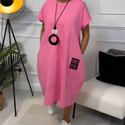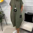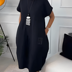 Ciesz się eleganckim luzem dzięki tej prostej, kaftanowej sukience Estelle z krótkimi rękawami, zaprojektowanej dla wygody bez rezygnacji ze stylu. Luźny, płynny krój delikatnie opływa ciało, zapewniając wyjątkową wygodę na co dzień. Lekki i przewiewny materiał utrzymuje chłód, idealny na ciepłe dni lub do relaksu w domu. Dzięki prostym liniom i minimalistycznemu wzornictwu, łatwo dopasujesz ten kaftan do różnych stylizacji: połącz z płaskimi butami, sandałami lub trampkami. Niezbędna i wszechstronna, doskonała na swobodne wyjścia i odpoczynek.