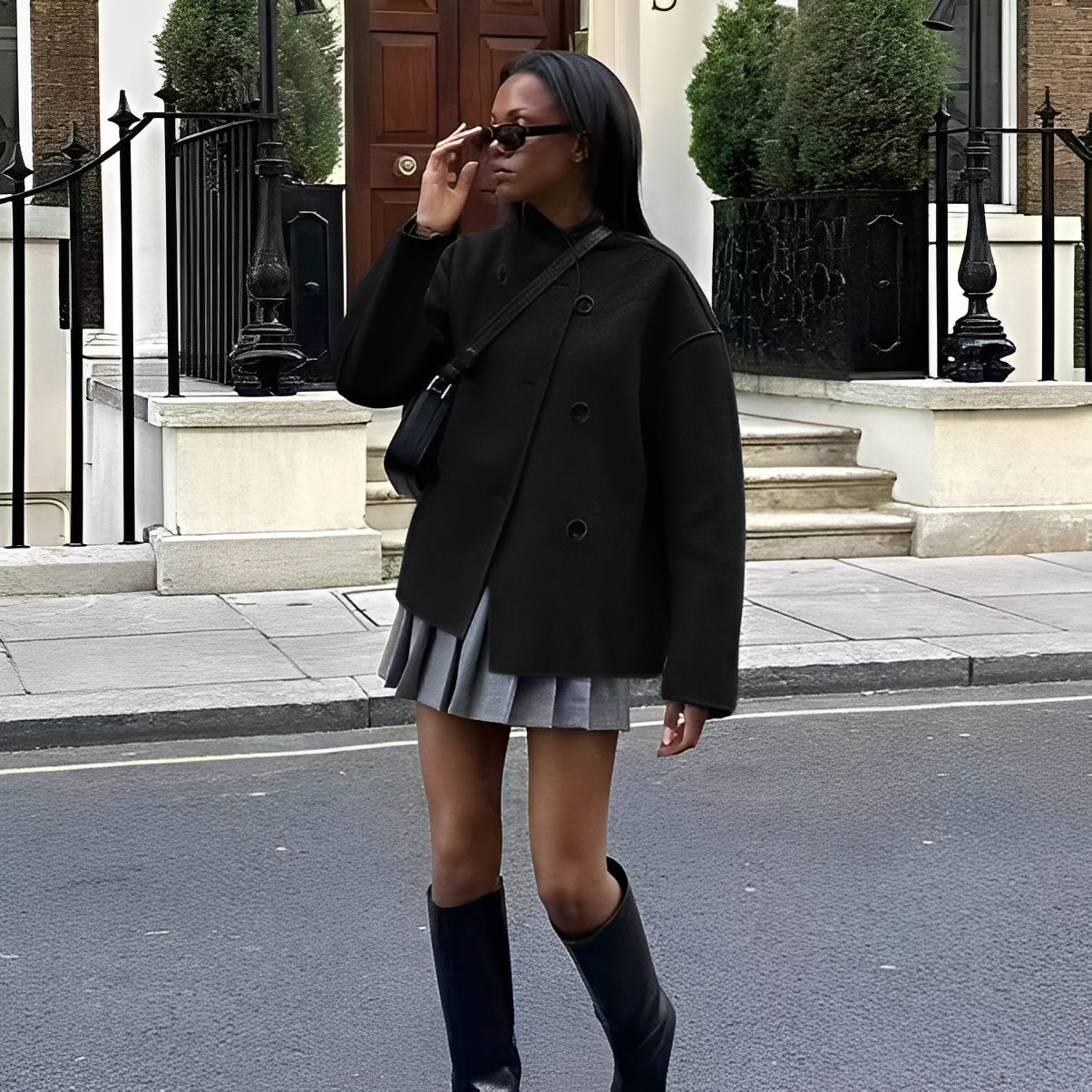 Eustacia - Luźny kobiecy płaszcz dwurzędowy