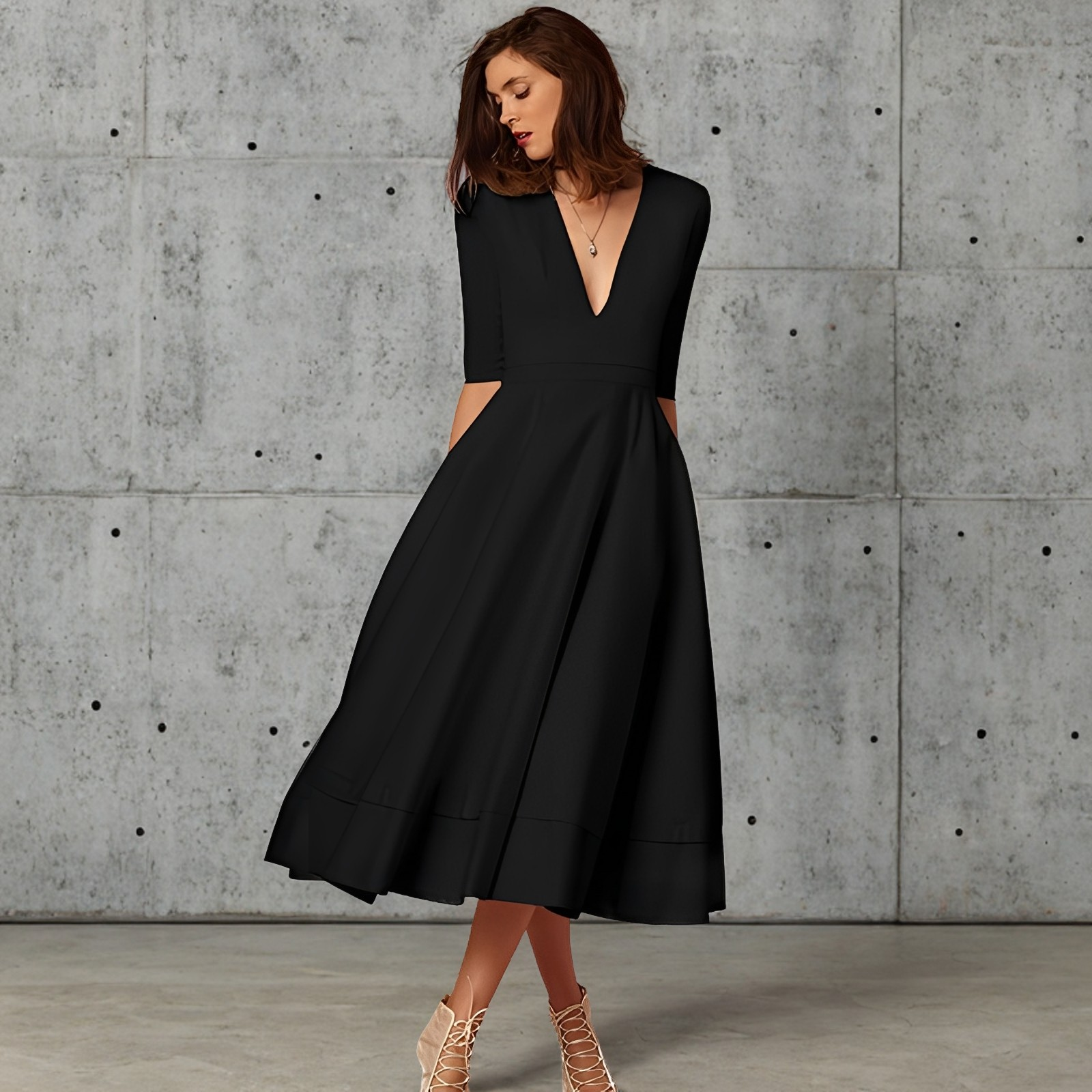 Fayei - Modna sukienka z dekoltem V dla kobiet