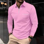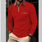 Florent - Polo męskie z długimi rękawami i suwakiem