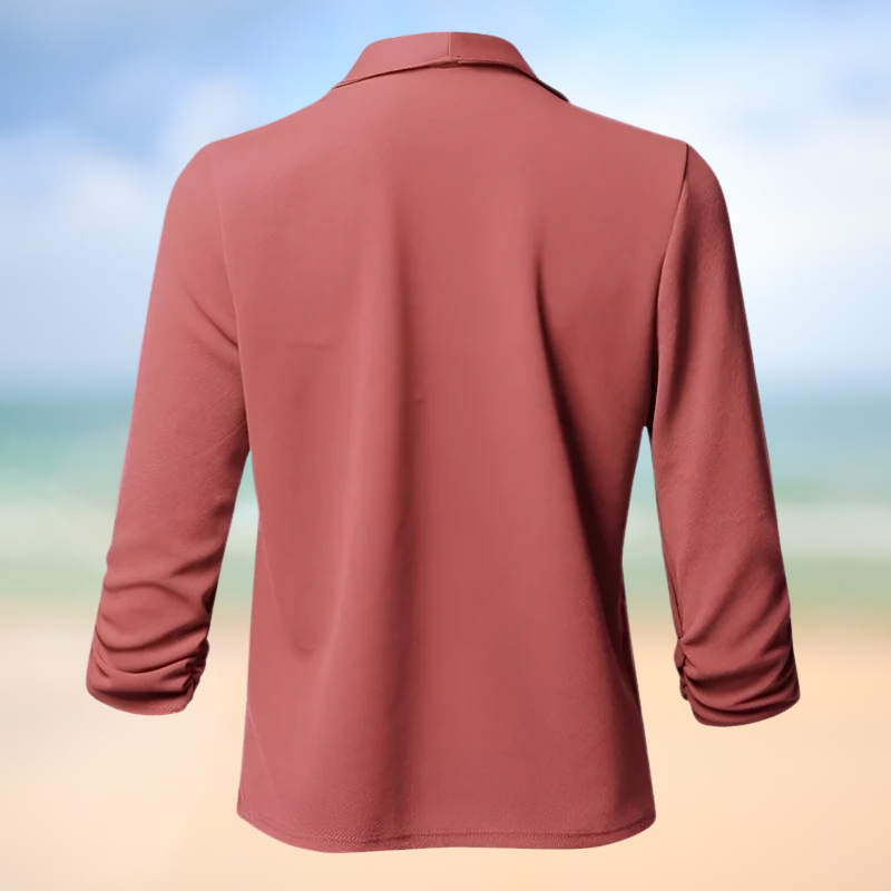 Rozszerz swoją garderobę o ten szykowny blezer z długimi rękawami, przyciągający wzrok i emanujący pewnością siebie oraz gracją. Ten formalny blezer o smukłej formie i długich rękawach zapewnia stylowy wygląd na każdą okazję. Niezależnie od tego, czy to do pracy, czy na wieczór, jest najlepszym wyborem dla klasycznej elegancji.
