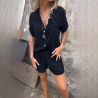 Letni zestaw Freya dla kobiet łączy wygodę z elegancją, tworząc harmonijny wygląd. Wykonany z lekkiego i oddychającego materiału, zapewnia świeżość i komfort w cieplejsze dni. Dopasowana góra i dół zapewniają starannie skomponowany wygląd, idealny na niezobowiązujące wyjścia, brunche czy wypady wakacyjne. Luźny, ale elegancki krój gwarantuje swobodę ruchu, a jednocześnie zachowuje stylowy wygląd. Dostępny w uniwersalnych kolorach, które pasują do każdej szafy.