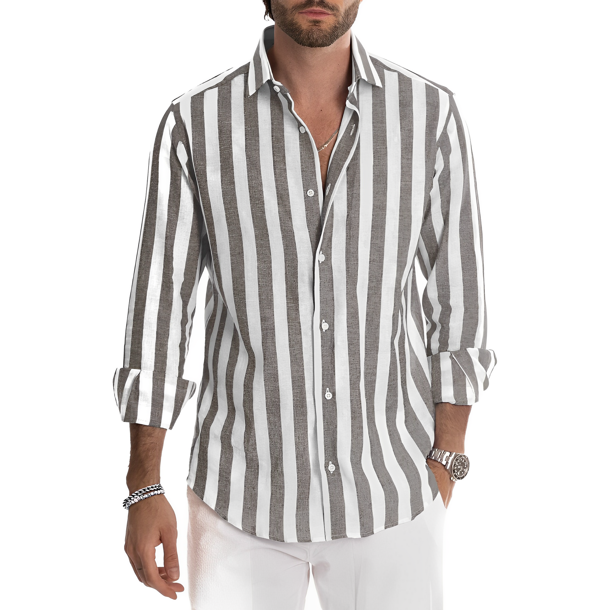 Greyson - Letnia męska koszula w paski, komfortowa
