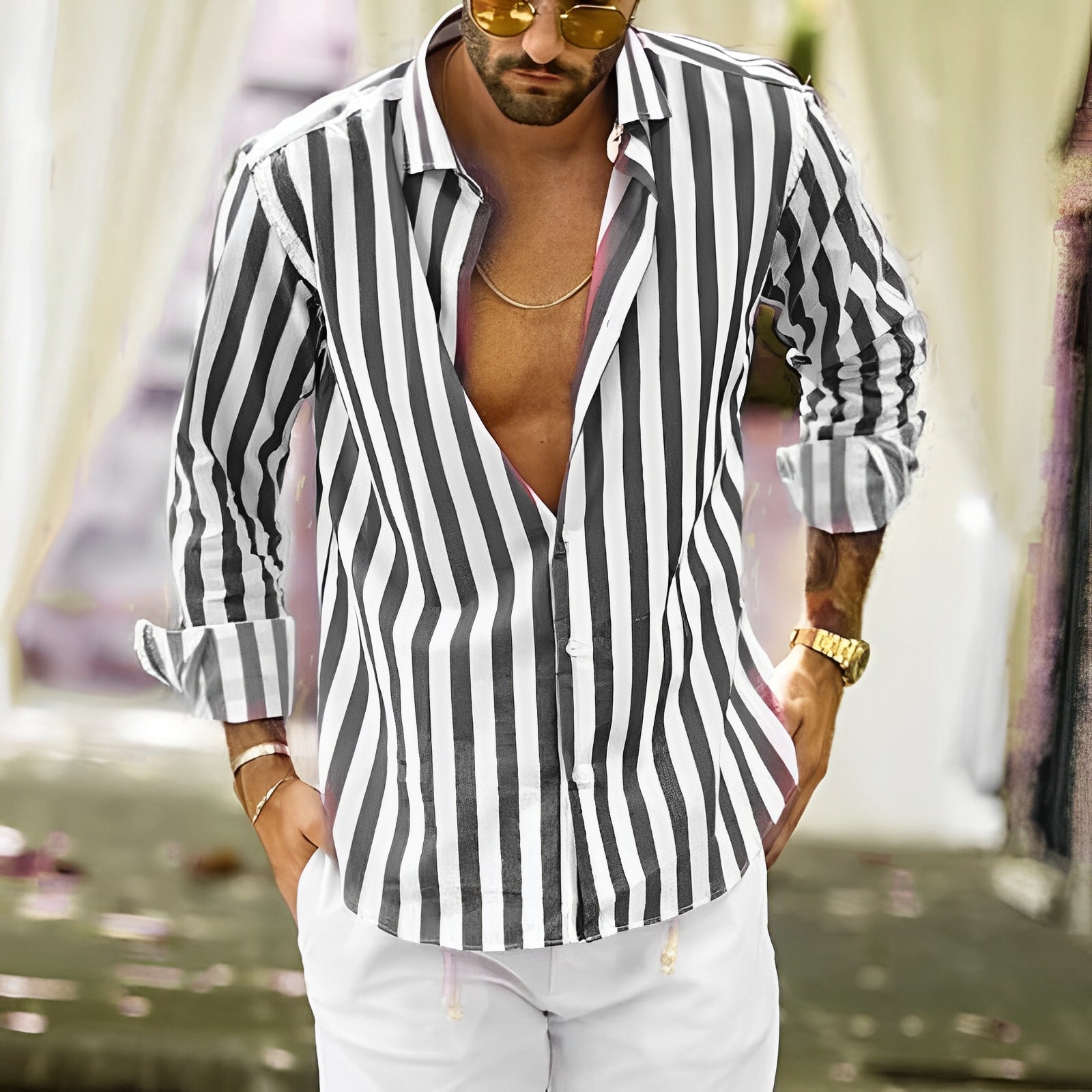Koszula Greyson zachwyca nowoczesnym wzorem w paski oraz wygodnym fasonem, który zapewnia pełną swobodę ruchów. Materiał miły w dotyku gwarantuje wysoki komfort noszenia, bez względu na to, czy jesteś w pracy, na spotkaniu, czy odpoczywasz. Klasyczne guziki i eleganckie kolory sprawiają, że ta koszula jest świetnym wyborem na każdą okazję. Dzięki solidnemu wykończeniu, koszula Greyson zachowuje doskonały wygląd przez długi czas. Jest nieodzowna dla mężczyzn, którzy cenią sobie modę, wygodę i styl.