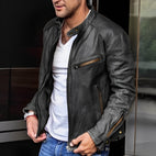 Brandon - Modna męska kurtka skórzana z licznymi kieszeniami