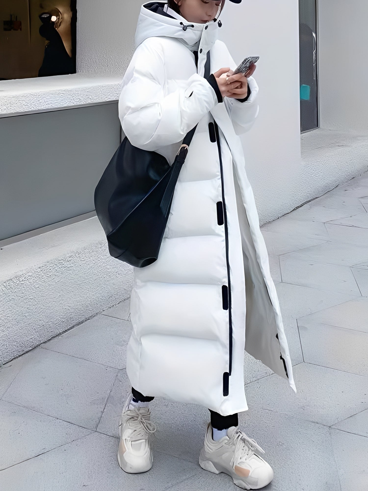 Hazel - Elegancka długa kurtka z kapturem dla kobiet