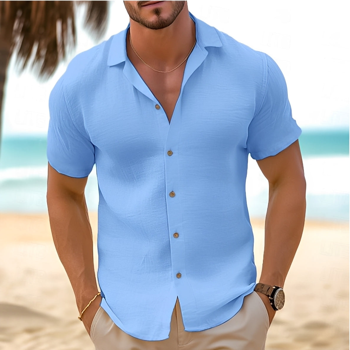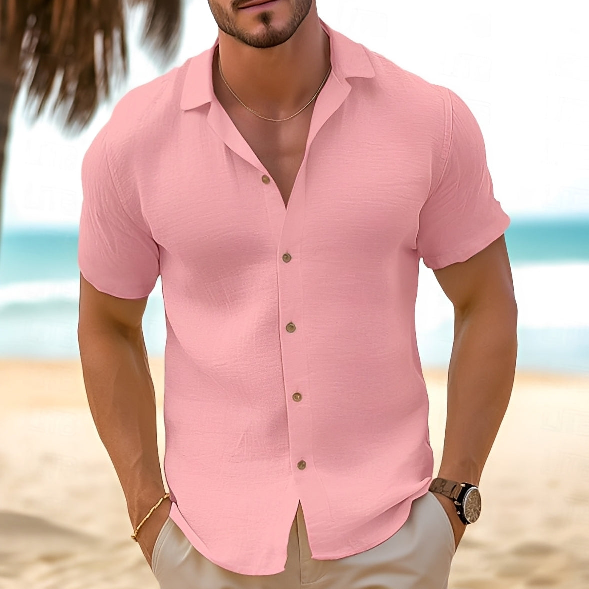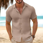 ZIMOWA WYPRZEDAŻOberon - Męska Koszula Lniana z Krótkim Rękawem