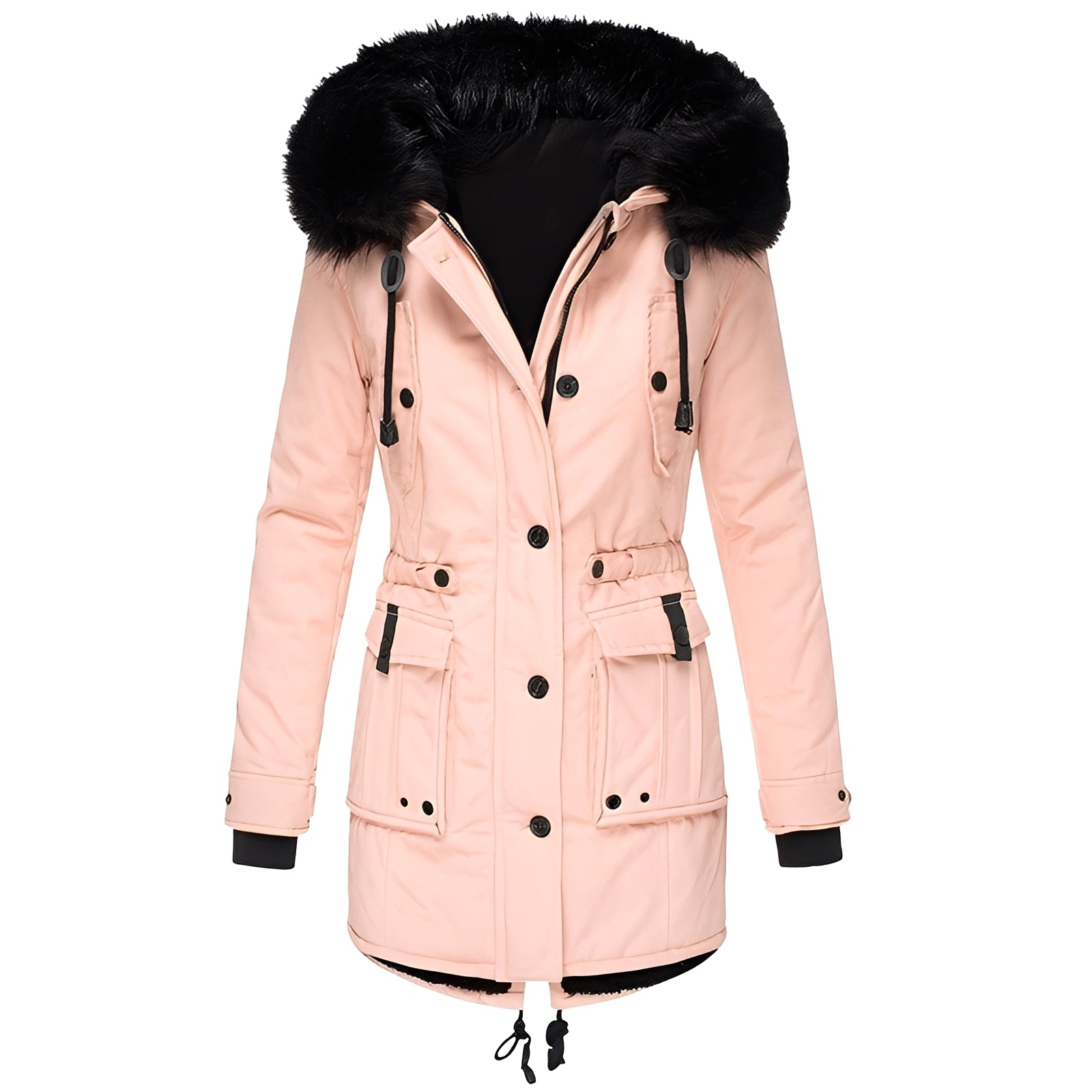 - Stylowy wygląd: nowoczesny krój z kapturem obszytym sztucznym futrem dla eleganckiego wyglądu.