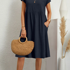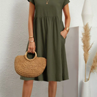 Odkryj doskonałe połączenie nowoczesnego uroku i ponadczasowej elegancji z Imogen Nowoczesną Sukienką Patchworkową. Zaprojektowana, aby podnieść twój codzienny wygląd, ta sukienka prezentuje sylwetkę w kształcie litery A, która podkreśla twoją figurę, oraz unikalne detale patchworkowe, które nadają współczesny akcent. Niezależnie od tego, czy idziesz na swobodne spotkanie, czy ubierasz się na specjalną okazję, ta sukienka obiecuje utrzymać cię elegancką i wygodną przez cały dzień.